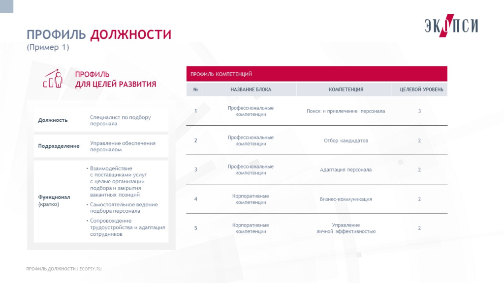 Оба профиля будут объединять разделы, касающиеся общей информации о должности: название, принадлежность к конкретному подразделению, ключевые задачи и функционал должности и пр.